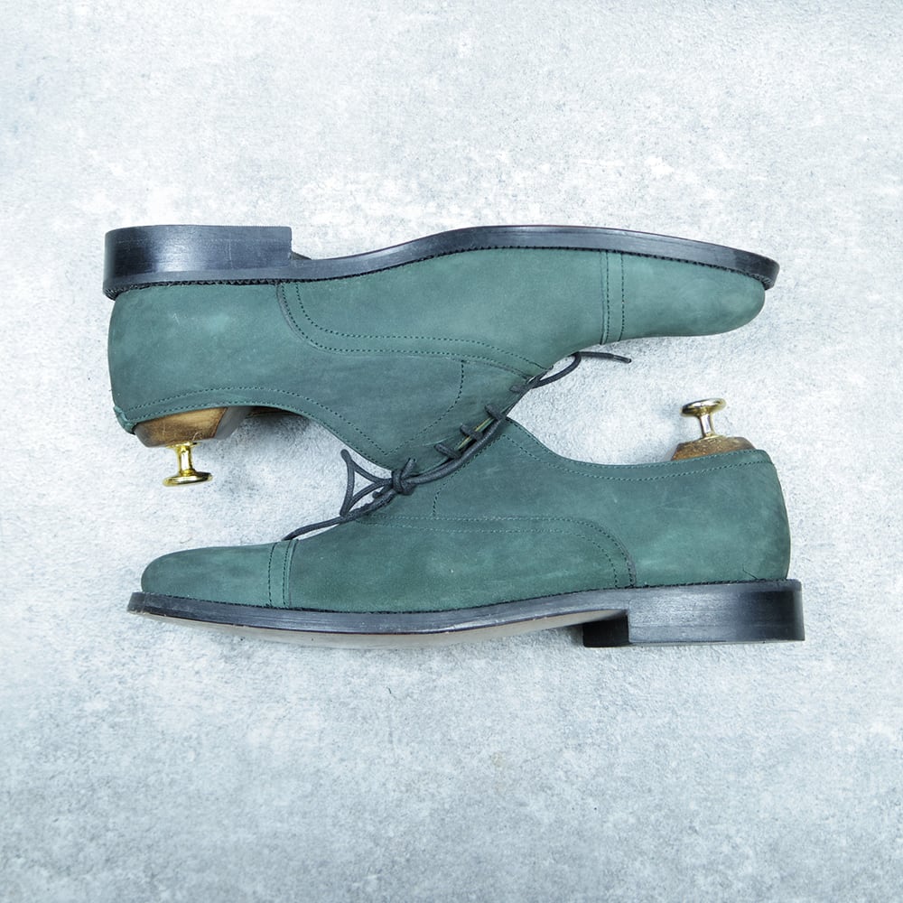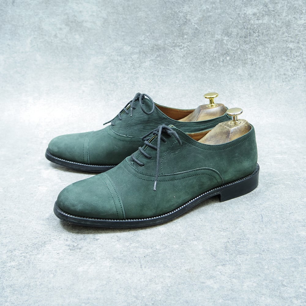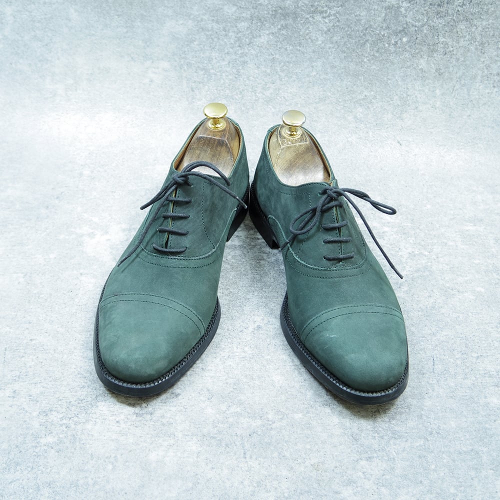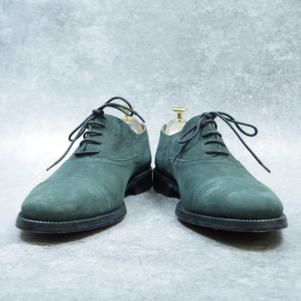 こちらは、珍しいカラーのヌバックストレートチップの革靴になります。