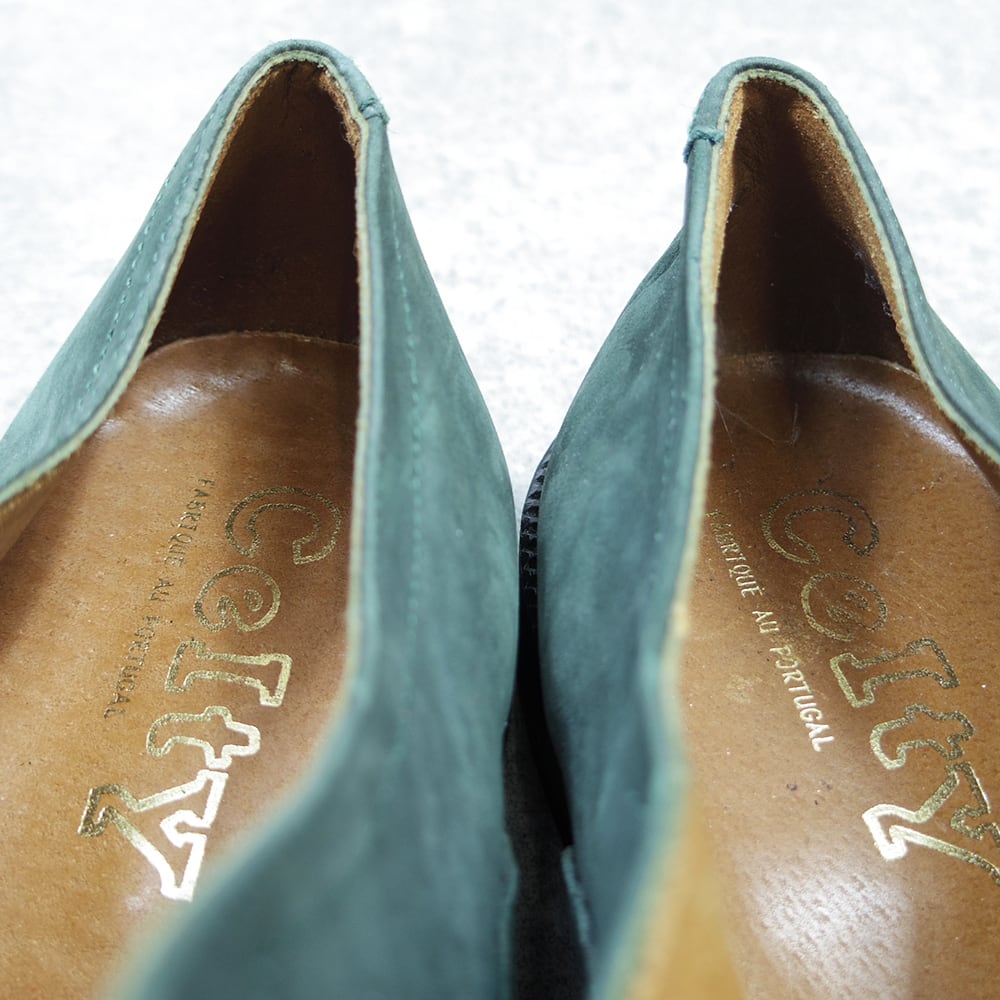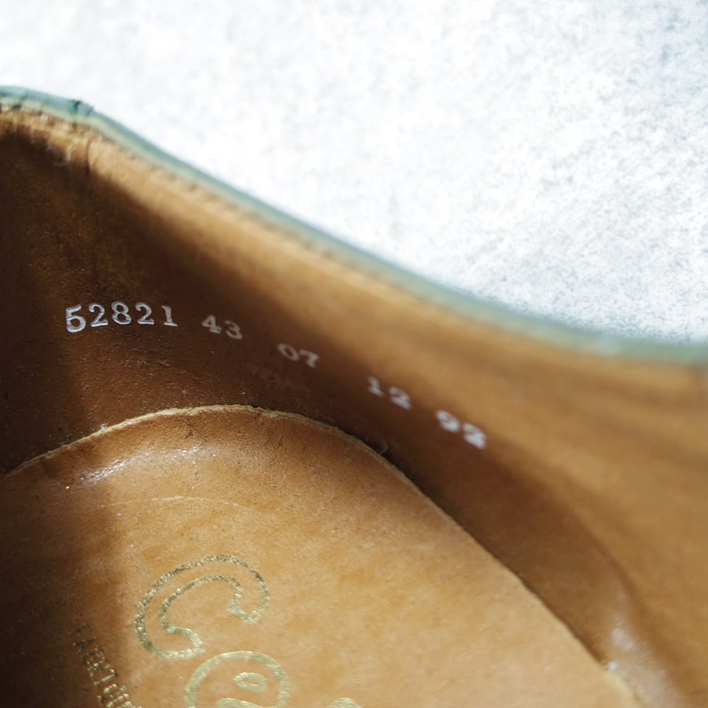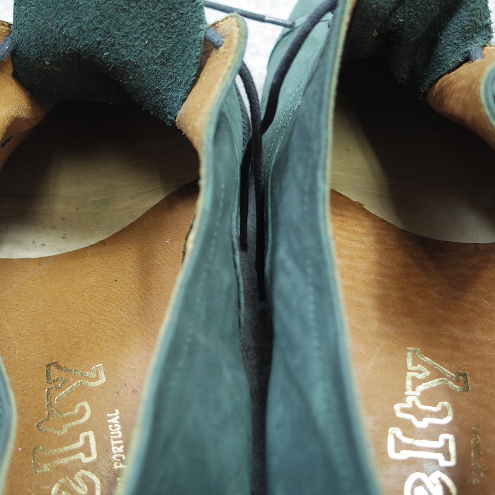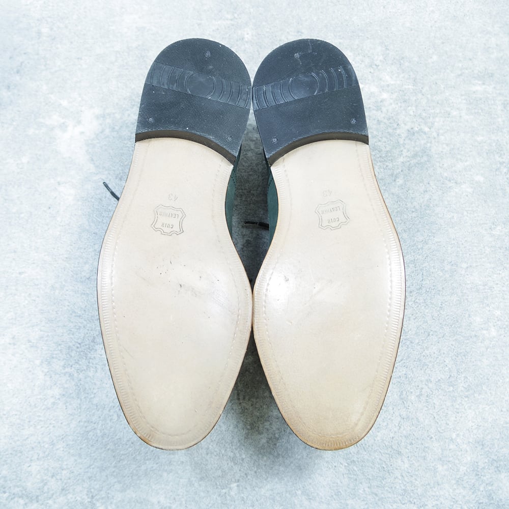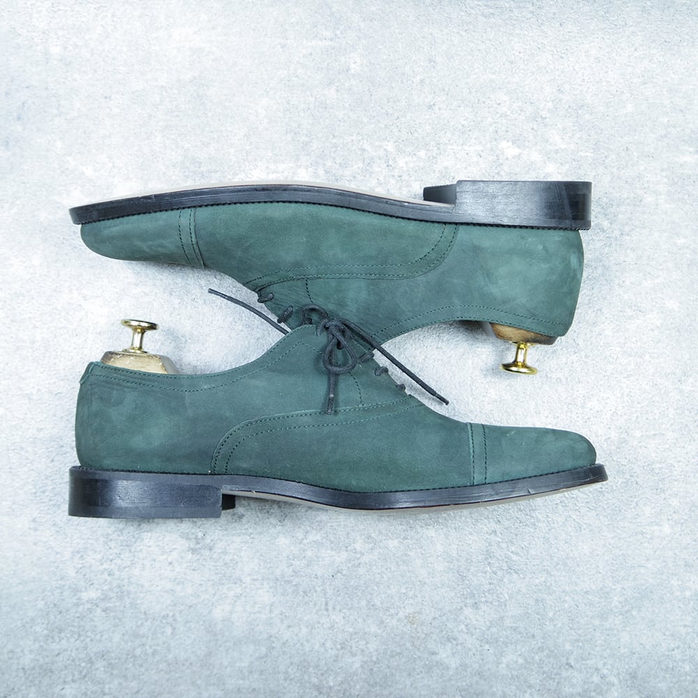 こちらは、珍しいカラーのヌバックストレートチップの革靴になります。