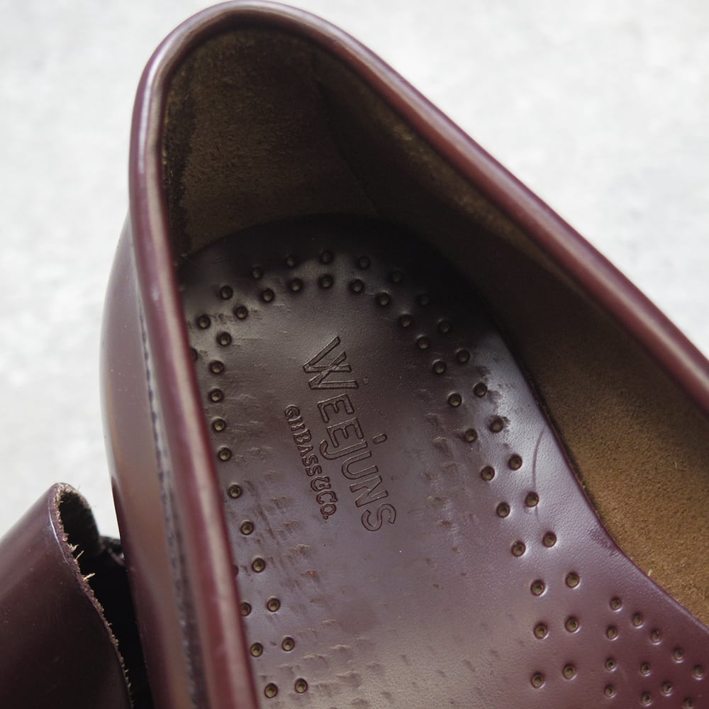 こちらは、アメリカメイン州で1876年創業、同州には多くのモカシンを生産するメーカーが存在しますが、そこを代表する世界で初めてローファーを作った老舗シューメーカーG.H.BASS&Co. の一足になります。