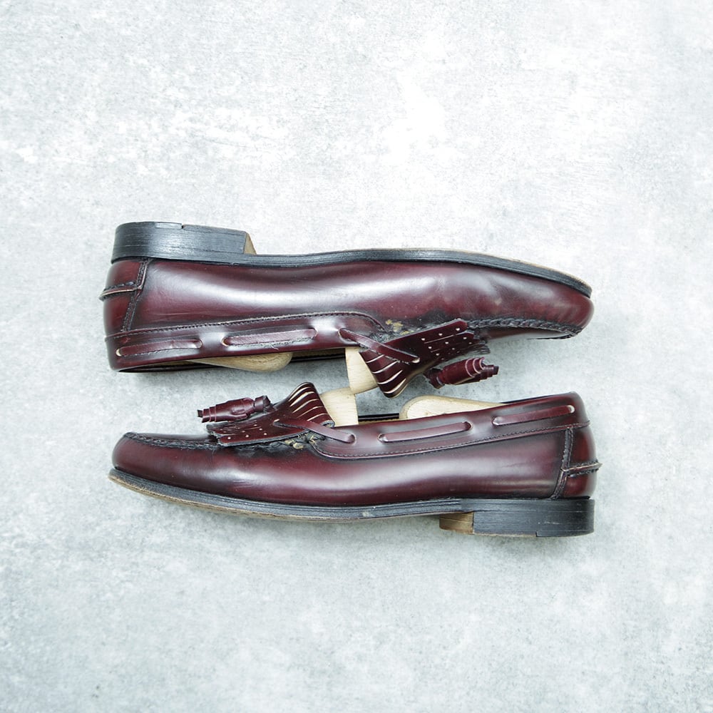 27~27.5cm ヴィンテージ キルトタッセルローファー バーガンディ マッケイ製法 A101