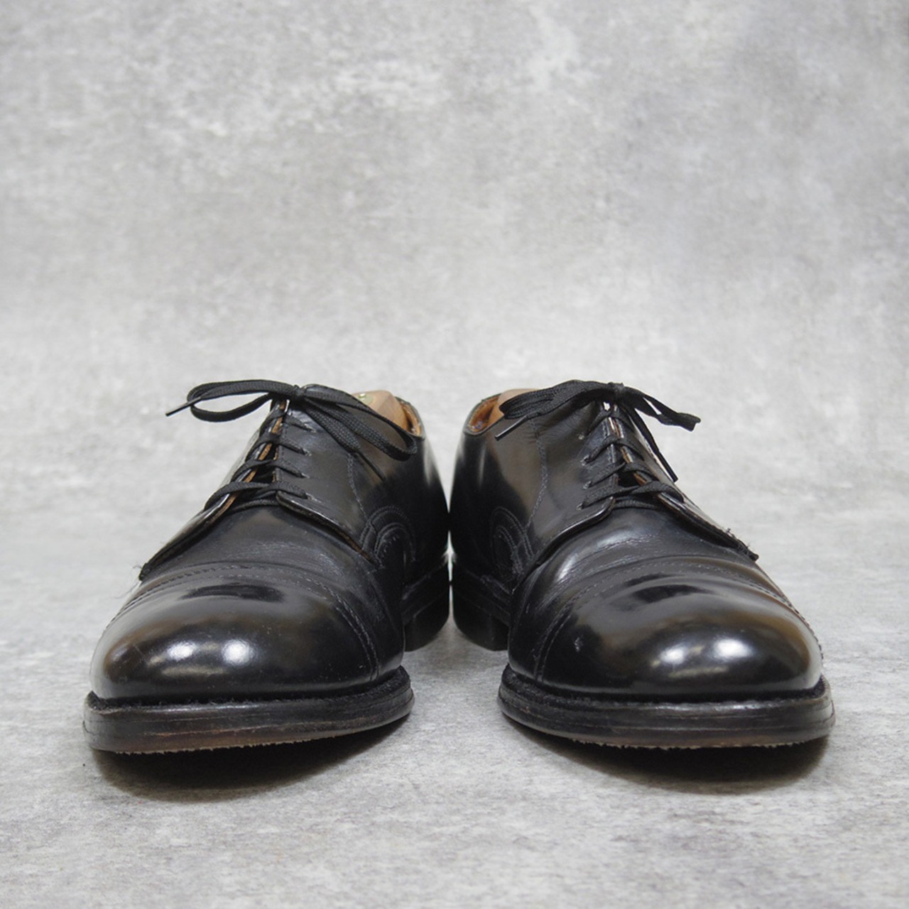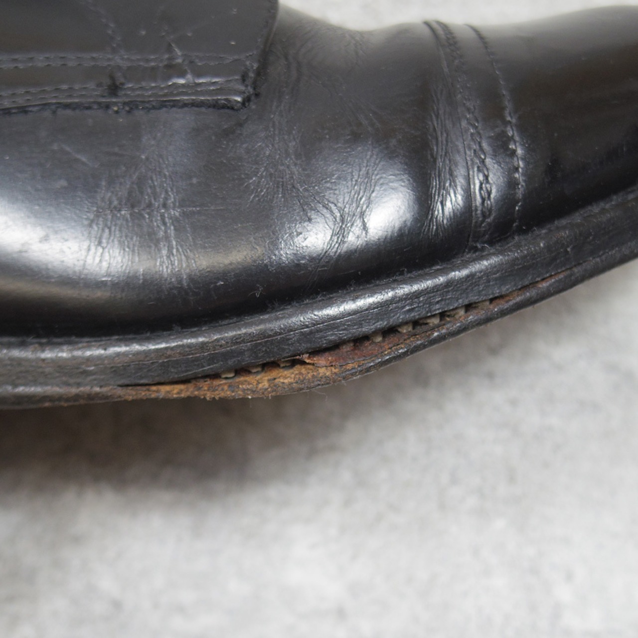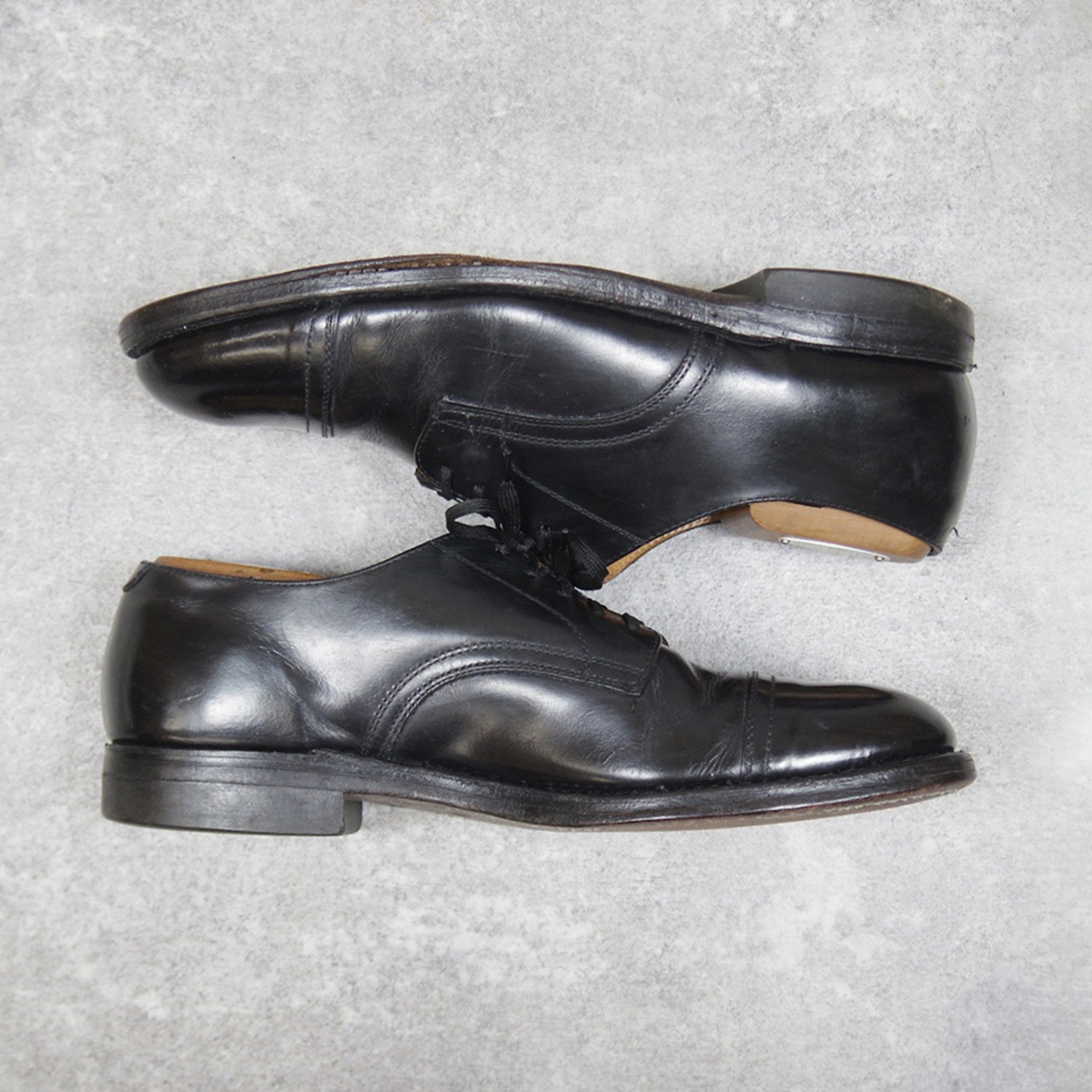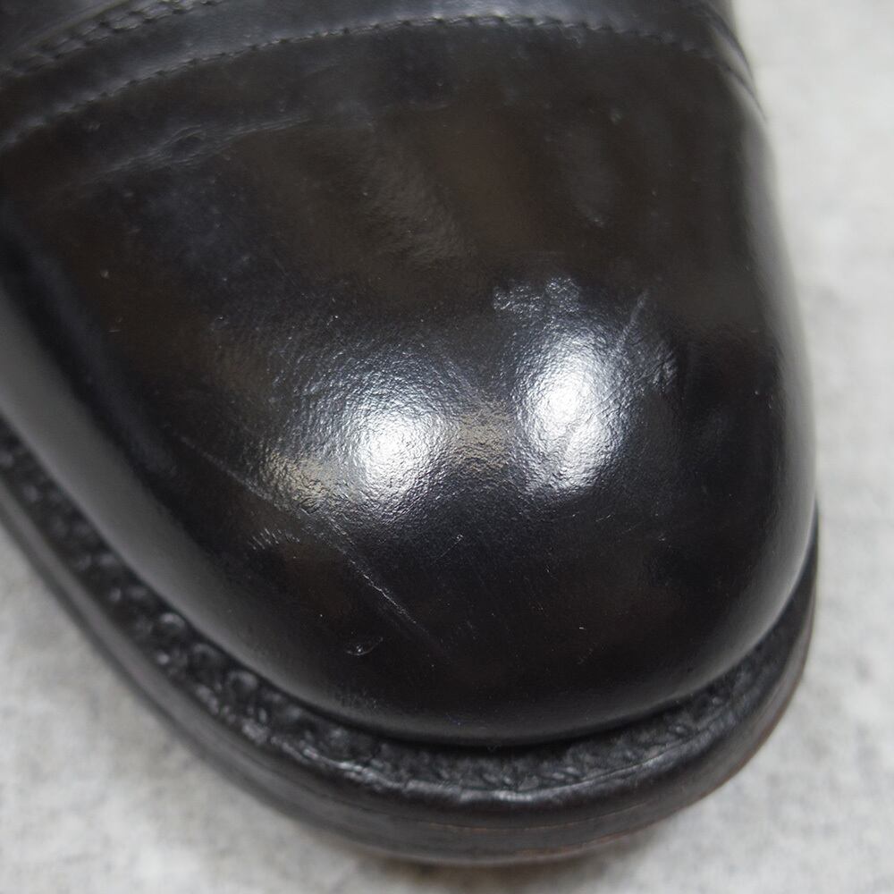 ヴィンテージ品ですので使用感や履きジワ、引っかきキズ等がございます他、右足アウトソールの一部の糸がほつれ剥がれかけています。気になる方は修理をなさってからお履きになることをお勧めいたします。