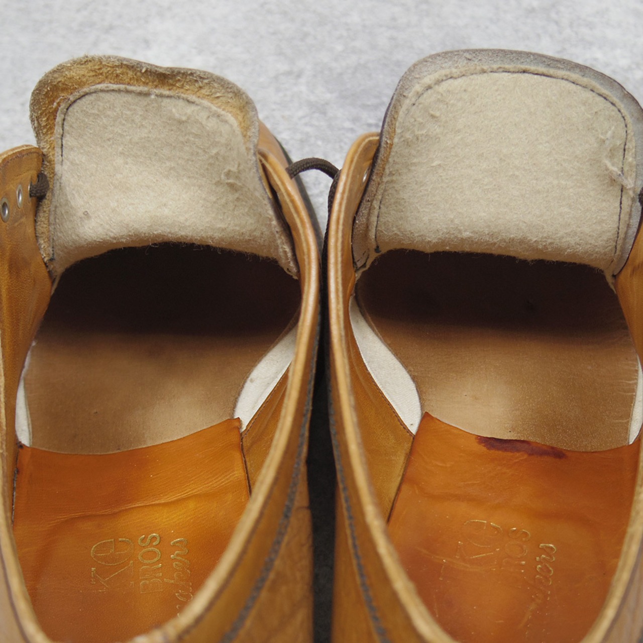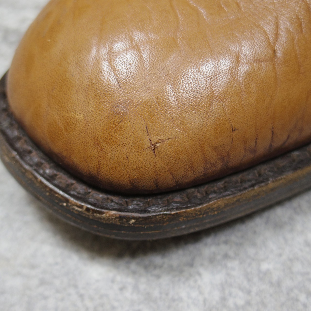 しっかりと繊維が詰まっていて、柔らかく、耐久性にも優れているキャメルスキン(ラクダ革)で造られた1足です。