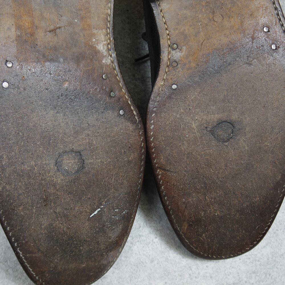 ソール裏に一部減り欠けがございますので、気になる方は裏張りなさってからお履きになることをお勧めいたします。