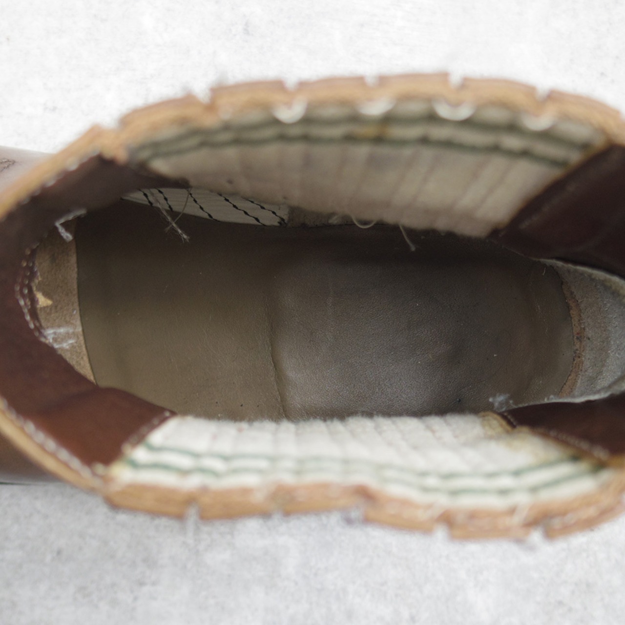 ユーズド品ですので使用感、引っかきキズ、履きジワ、色ムラがございます他、左足つま先部のソールが一部欠けていますが、まだまだご着用いただけます。