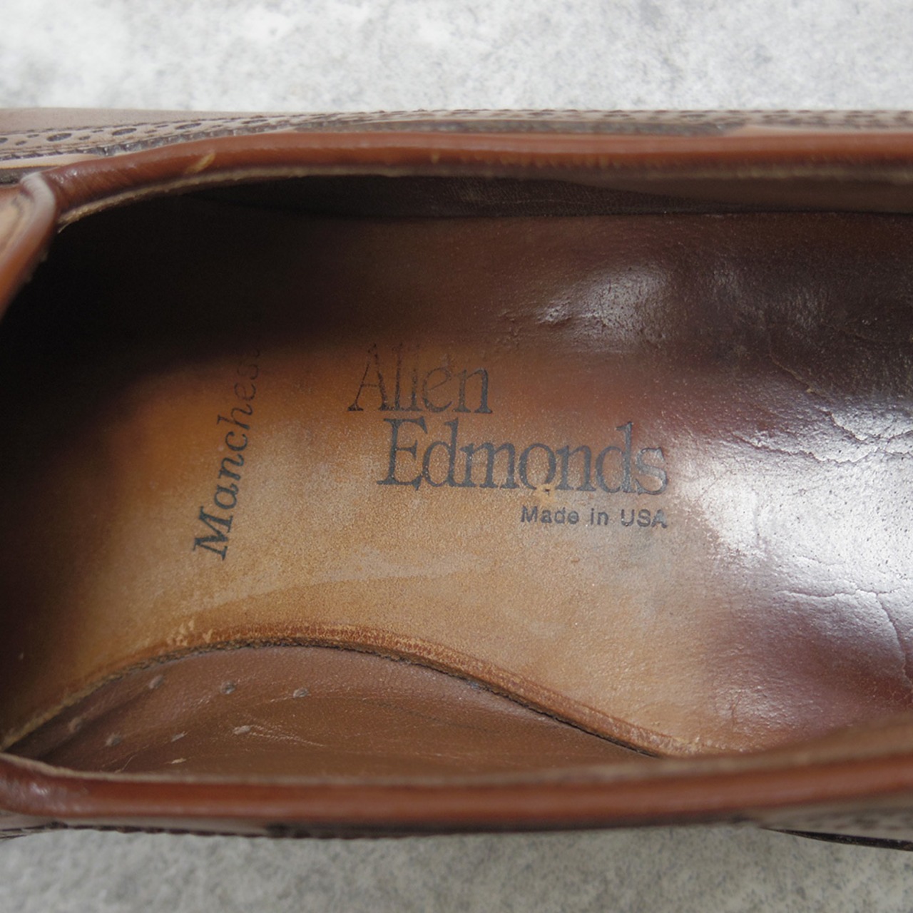 パンチングのしっかり効いたウィングチップが存在感のあるManchester(マンチェスター)。また、こちらは大文字ロゴであることから80年代の一足になります。